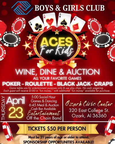 It's a night built for FUN while supporting the Boys & Girls Club of Ozark-Southeast Alabama and the kids we serve every day.